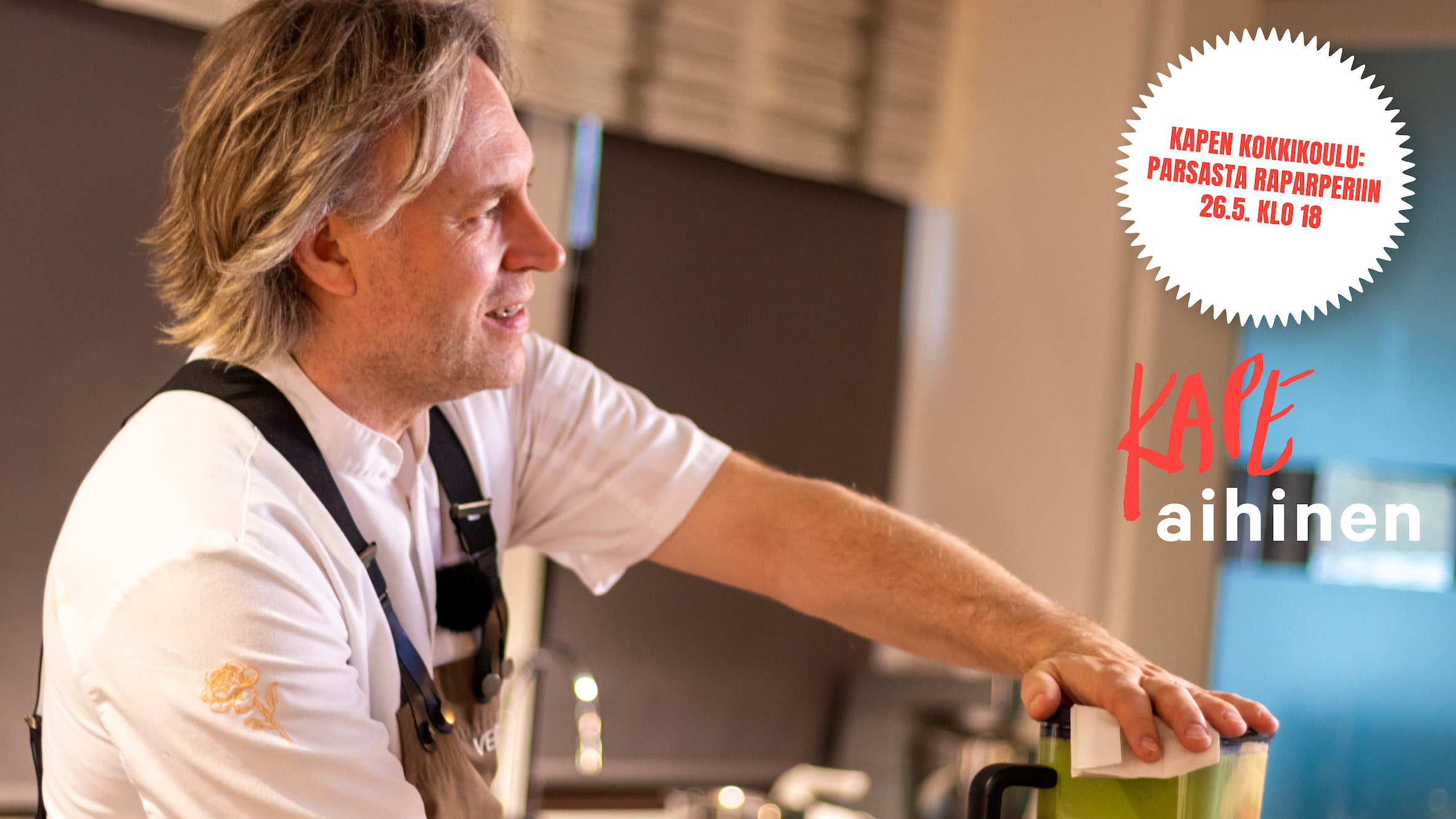Kape on yksi Chefsliven perustajia ja jatkaa palvelussa keväällä 2021 suosituksi nousseita Kapen kokkikouluja omalla rempseällä ja rennolla otteellaan.